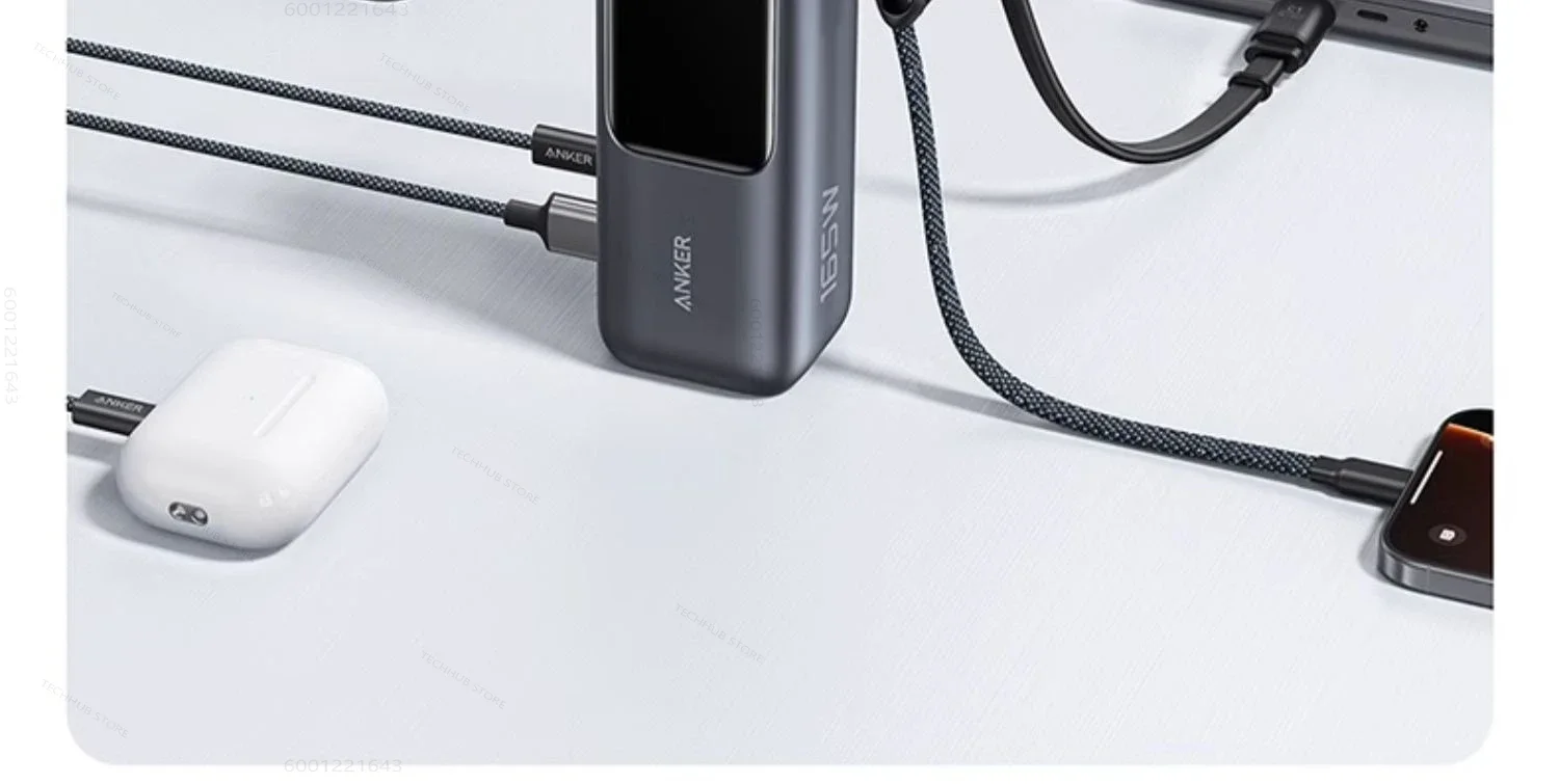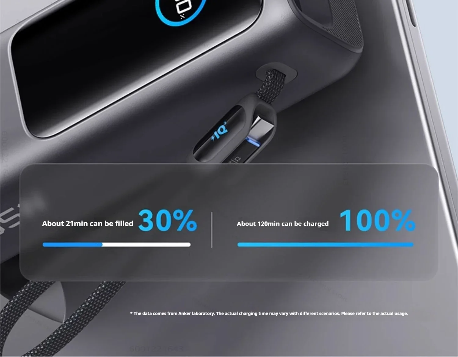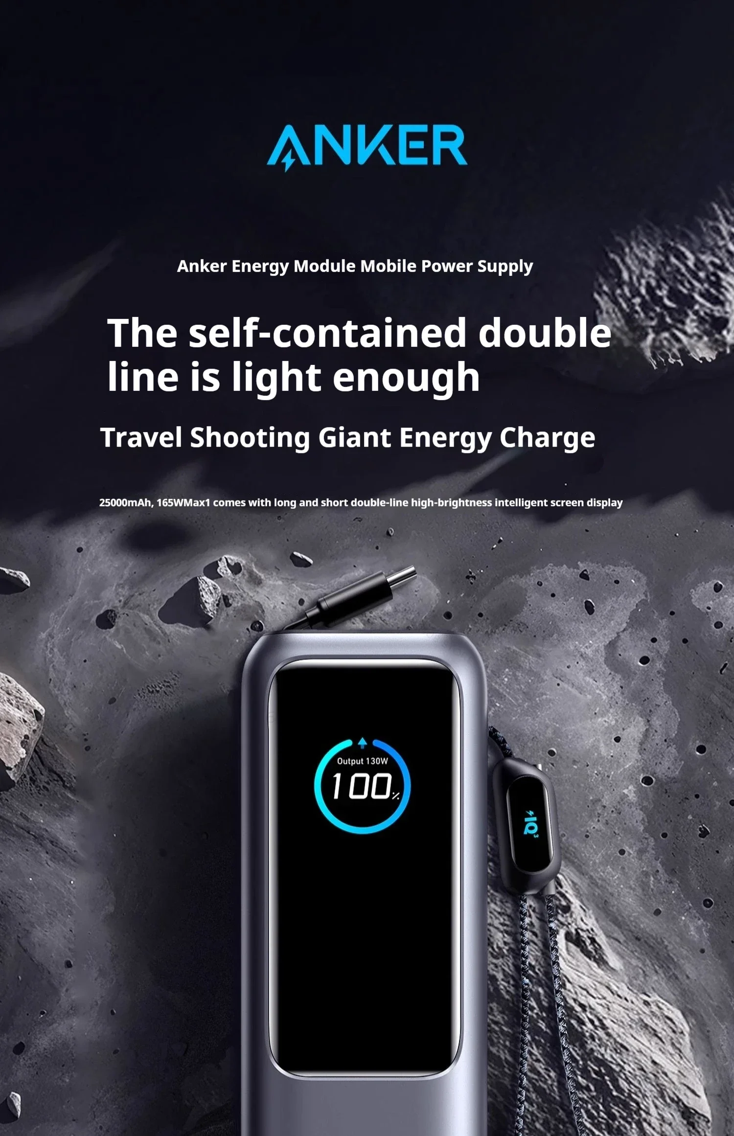 Anker Zolo Power Bank 25000Mah 165W Max Fast Charge High Capacity Retractable Cables Mobile Phone Power Bank Lightweight PC