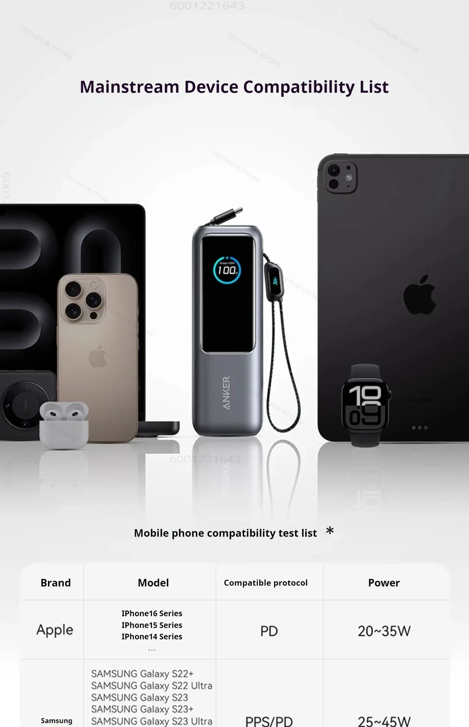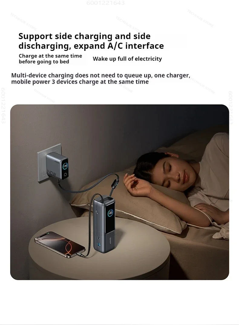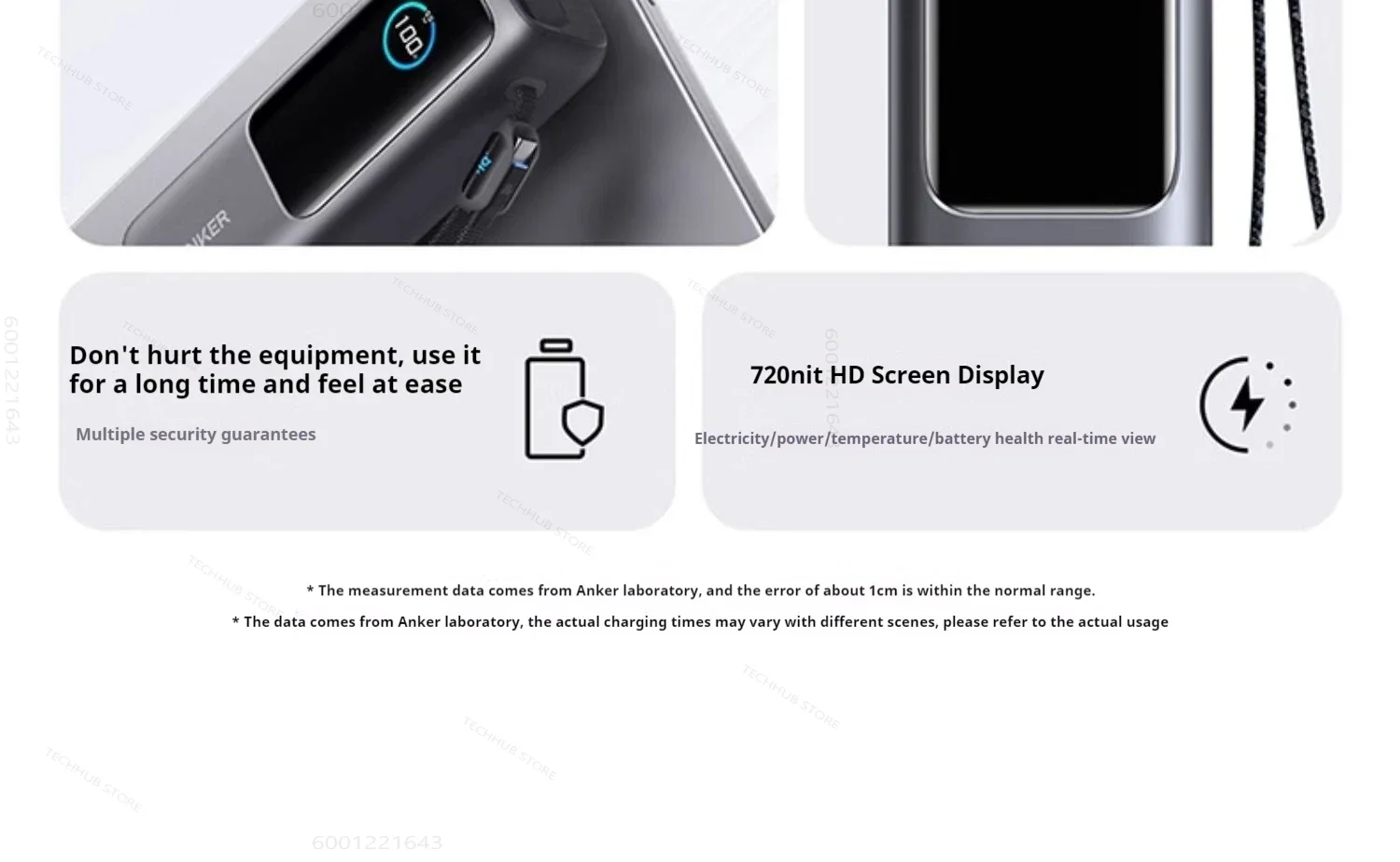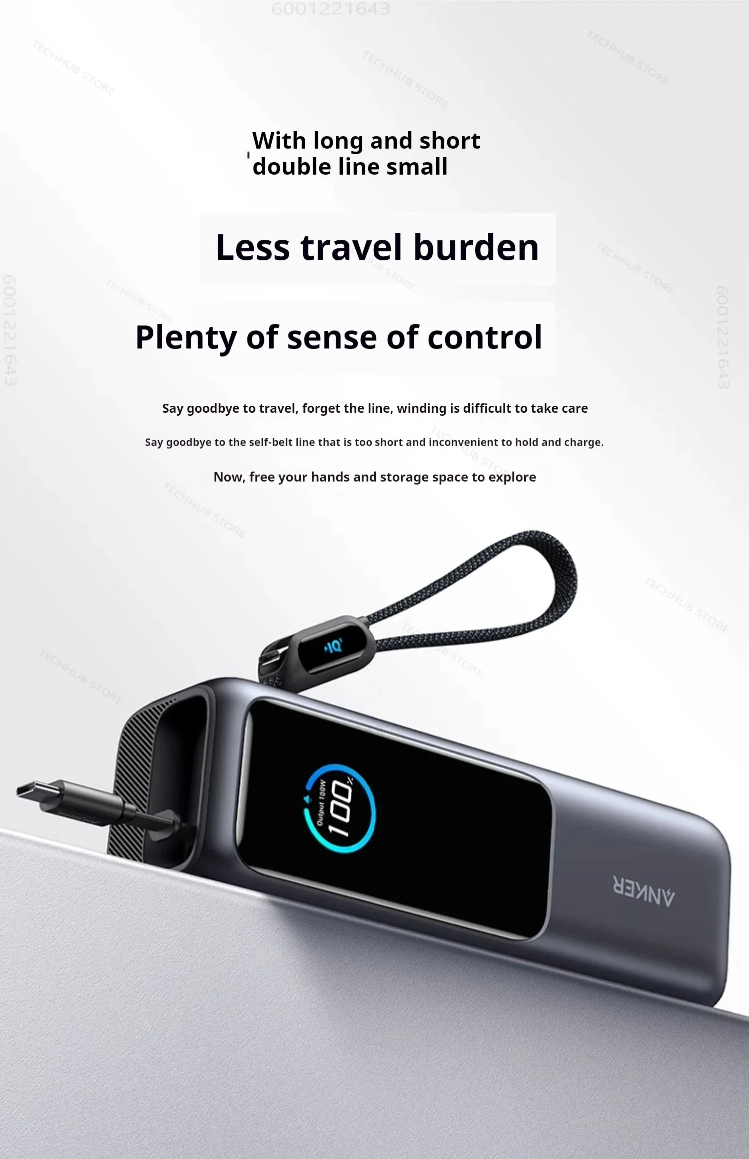 Anker Zolo Power Bank 25000Mah 165W Max Fast Charge High Capacity Retractable Cables Mobile Phone Power Bank Lightweight PC